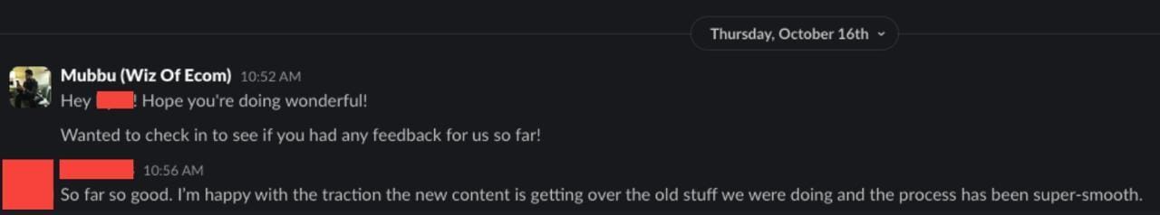P.S. Here’s what he had to say about working with us so far: "I’m happy with the traction the new content is getting over the old stuff we were doing and the process has been super-smooth."